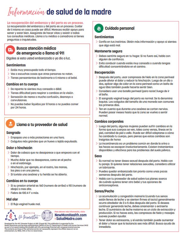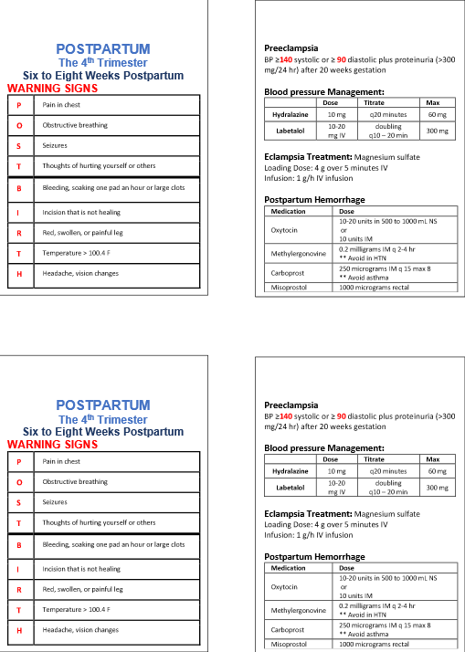 Maternal Warning Signs Target Audience: doctors, residents, nurses, emergency personnel, doulas, lactation consultants, and childbirth educators